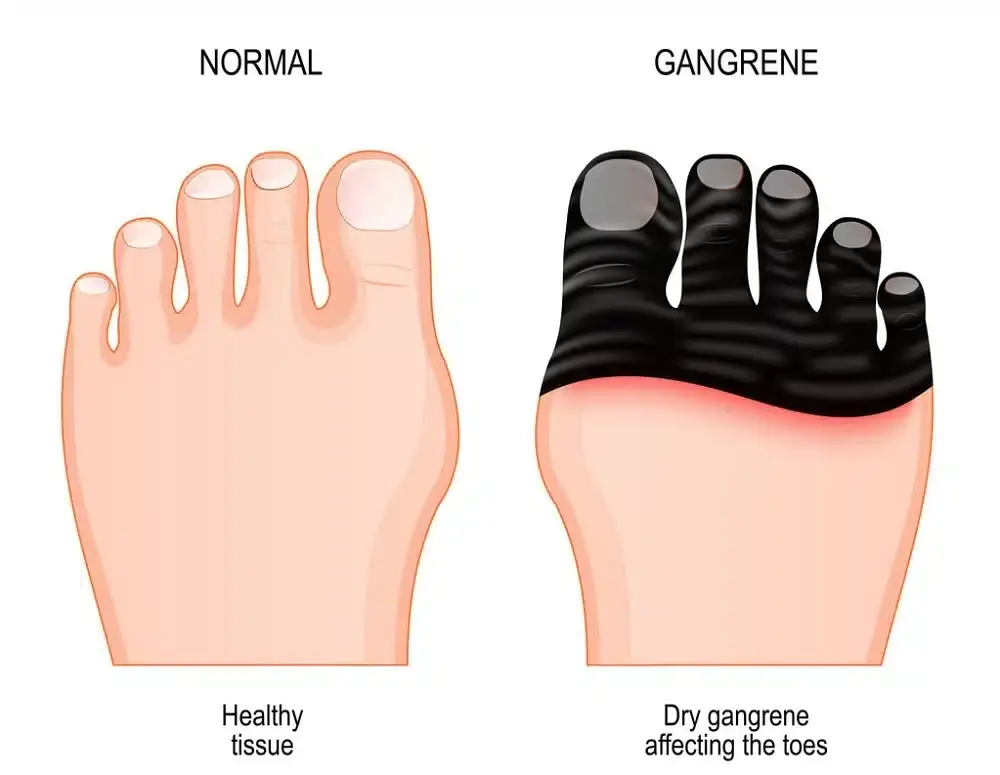 إذا لوحظت الغرغرينا في قدم المطلقة اليمنى، يُعتقد أن ذلك يشير إلى وجود شخص في دائرتها الاجتماعية يمر بأزمة صحية، لكن من المتوقع أن يشهد تحسنًا في حالته الصحية قريبًا بمشيئة الله.